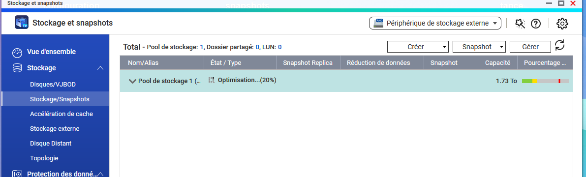 Avant de passer à l’étape des dossiers partagés, je recommande d’en faire de même avec les autres pools de stockage, y compris si vous avez des pools de stockage sur des boitiers d’extension.