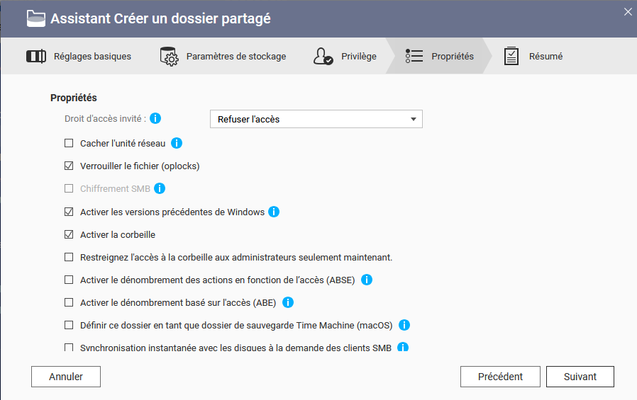 Suit l’assistant de création de dossier partagé ci-dessous :