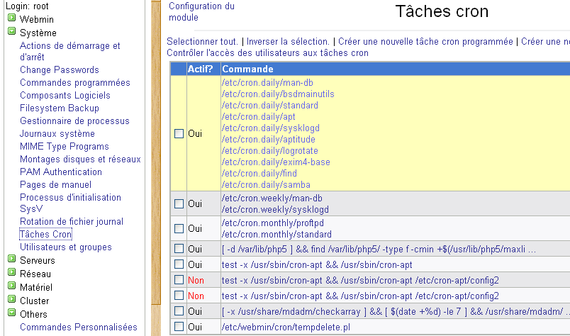 En effet, webmin est génial car on peut administrer ce genre d’actions sur un serveur distant.