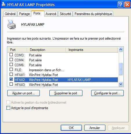 Un Pop-up s’ouvre pour vous permettre de choisir le port HFAX, laissez le par défaut pour éviter tout conflit avec d’autres imprimantes.