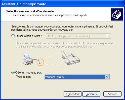 Dans la fenêtre suivante il suffit de séléctionner "Créer un nouveau port" et choisir "Winprint Hylafax".