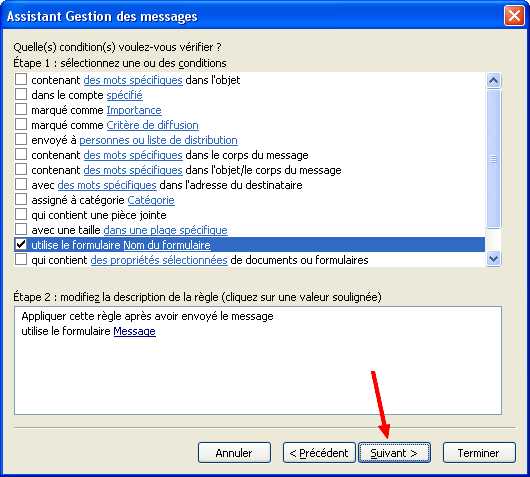 9. Valider par suivant, y compris sur la fenêtre suivante (sauf si vous voulez y ajouter une règle supplémentaire)
