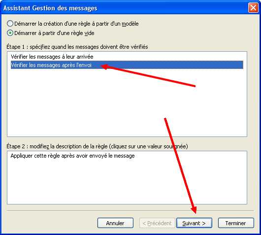 5. Choisir vérifier après l’envoi, puis suivant