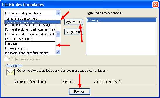 6. Choisir formulaire d’application, puis choisissez « messages », ajouter, puis fermer