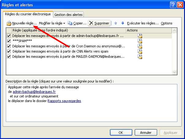 3. Dans la fenêtre qui s’affiche, choisir « nouvelle règle »