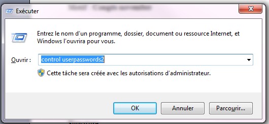 Saisir "control userpasswords2" dans cette boite, ainsi que sur l’illustration ci-dessous.