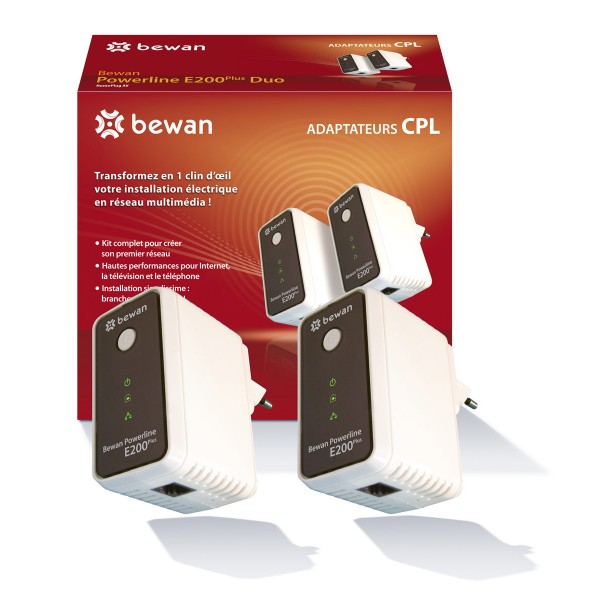 La freebox V6, ne passant que par le cpl pour se connecter sur son lecteur multimédia, et ne disposant pas de connection éthernet dans cette pièce, j’ai fait l’achat de deux adaptateurs cpl bewan e200 plus comme l’illustre la photo ci-après, pour faire correspondre le réseau freeplug au réseau local.