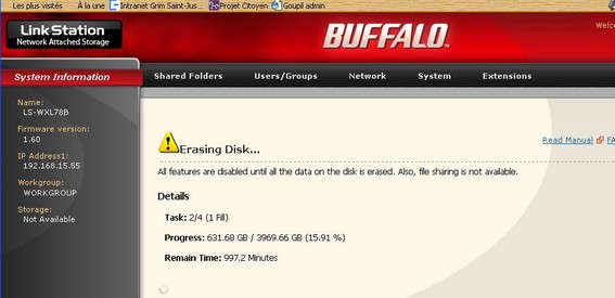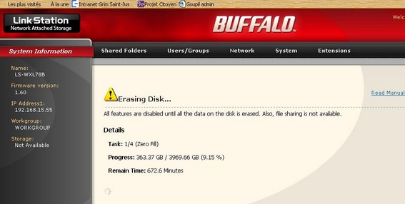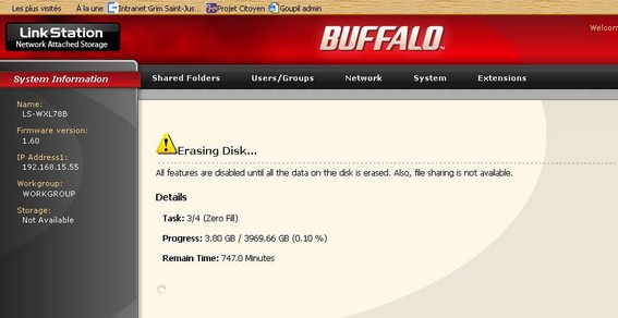 J’ai un nas buffalo LS-WXL , qui avait dans ses entrailles deux disques wertern digital 500 Go.