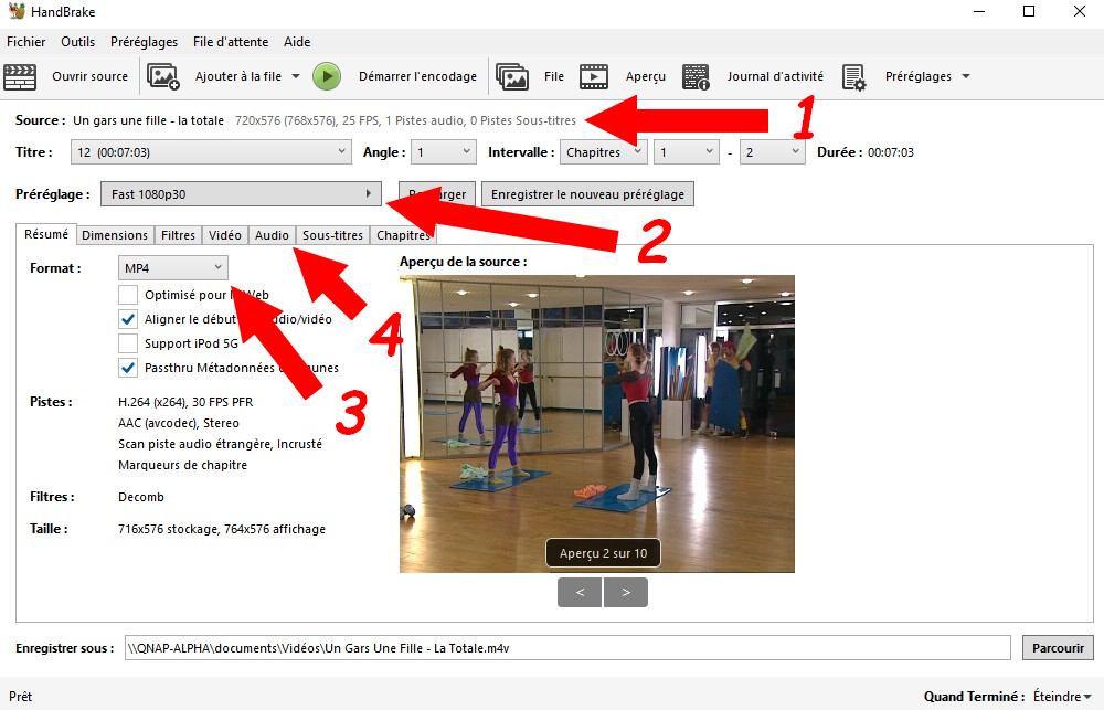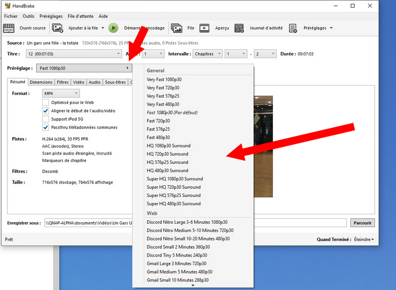 Personnellement, je me suis borné pour la majorité des DVD, à utiliser le Fast 1080 p 30, mais rien ne vous empêche de tester les différentes options. En tout cas, cette option relève fidèlement les anciens DVD sans être obligé de se poser la question de toucher à ce réglage à chaque encodage de film DVD.