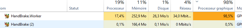 Pour vous donner une idée, avec 1300 Ips sur la configuration évoquée, j’encode 45 mn de film en 55 secondes. (du format VOB -DVD- en H265).