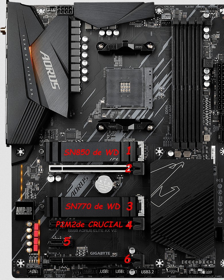 – l’emplacement n°1 reçoive le SN850 de Western Digital, qui fonctionnera à 100 % de ses capacités maximales