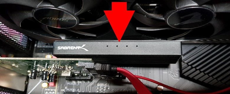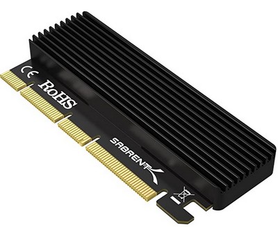 Pour installer un NVME sur l’emplacement n°4, il a évidemment fallu que j’installe un équipement supplémentaire, à savoir un adaptateur avec dissipateur Thermique pour SSD M.2 NVMe vers PCIe X16/X8/X4 (EC-PCIE), pour le coup, de la marque SABRENT.