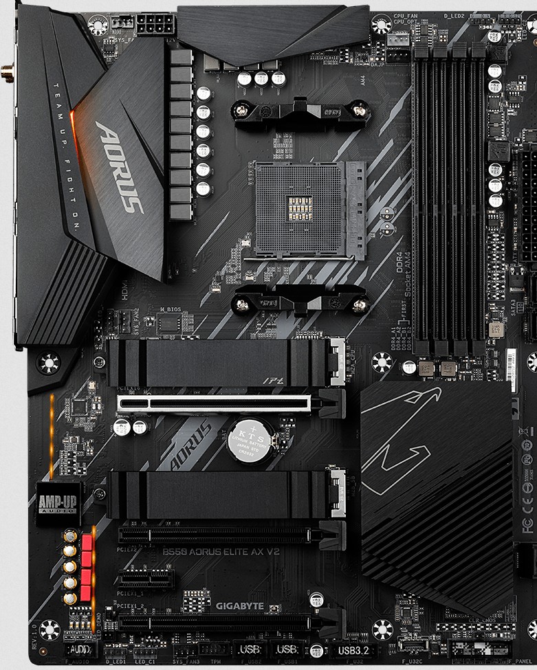 Poursuivons par la carte mère récipiendaire, en l’occurence, une gigabyte B550.
