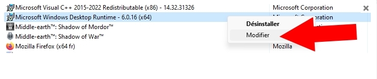 C’est le cas, alors interrogeons nous sur son état et effectuons une réparation en cliquant droit sur le programme afin d’avoir les options de modification , puis en choisissant "réparer".