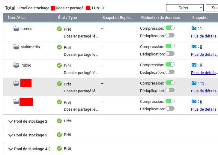 Voilà pour les dossiers partagés que vous retrouverez dans vos pools de stockage :