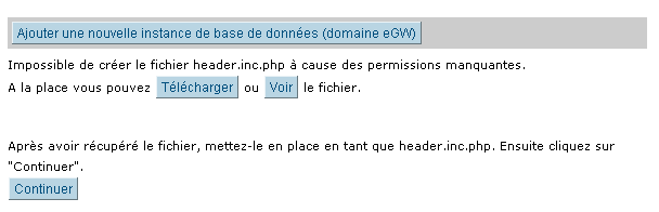 – soit télécharger le fichier header.inc.php sur son pc, le modifier avec ses paramètres, puis de le remettre "à la main" sous /var/www/wwwegroup/. (Bouton Télécharger)