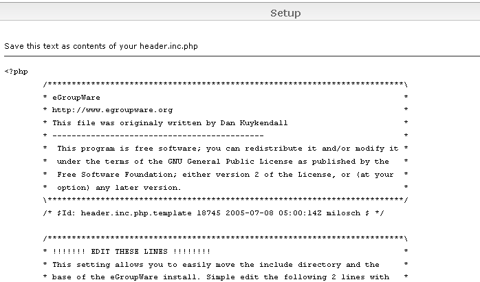 4 - copier l’intégralité du contenu de header.inc.php affiché par votre egroupware